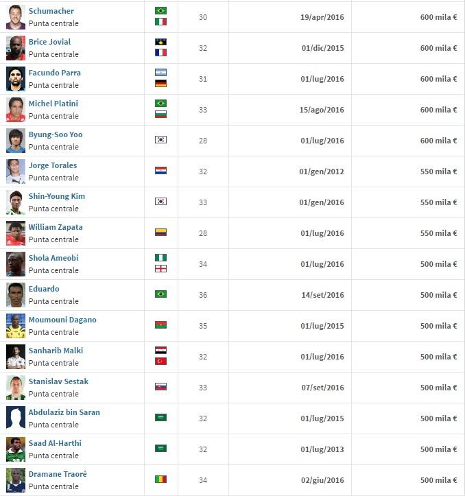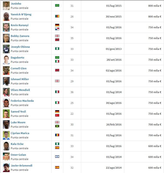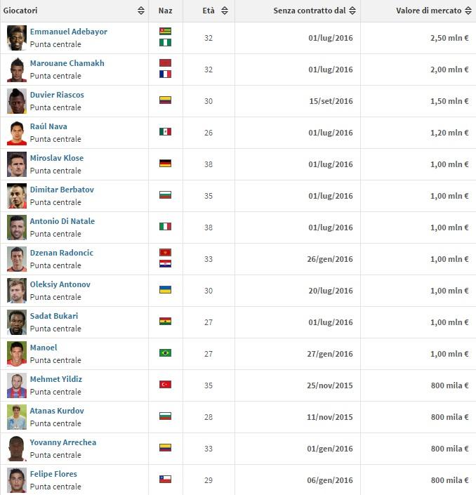 SCORRI LA LISTA DI TUTTI GLI ATTACCANTI SVINCOLATI (fonte: Transfermarkt.it)