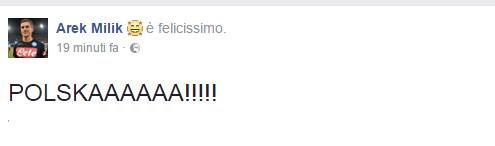 L’attaccante del Napoli, infatti, sul suo profilo Facebook, ha postato un messaggio breve ma che dice tutto: “Polskaaaa”.