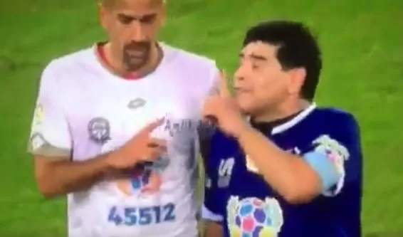 “Non so a cosa si riferisca Maradona. Ciò che dice è poco serio e non m’interessa. Le sue parole sono di scarsa rilevanza”, rispose Veron. E i due stasera si sono beccati in campo. Alla partita della pace: una scena poco edificante.