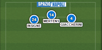 TREQUARTISTA – Se Mertens non può considerarsi un falso nueve – che in realtà prevede l’utilizzo di un trequartista in posizione più avanzata e non di una seconda punta scattante – tale ruolo potrebbe essere ricoperto da Hamsik, centrocampista con buona visione di gioco, o il primo Insigne di Sarri (nel 4-3-1-2) con qualità di assist-man e i due esterni più vicini al centro dell’attacco (Callejon e Mertens).