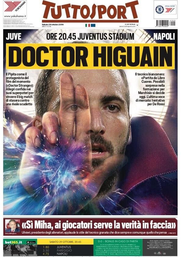 La Gazzetta dello Sport ha interpellato i maggiori campioni per scegliere la favorita del big match mentre Tuttosport è ironico, paragonando Doctor Stranger al Doctor Higuain, sotto i riflettori negli ultimi giorni.