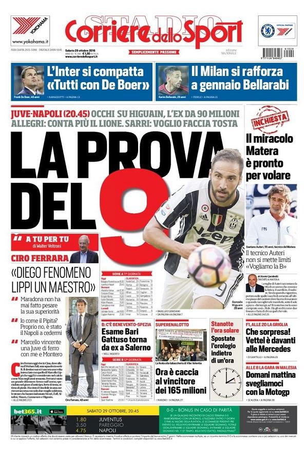 La Gazzetta dello Sport ha interpellato i maggiori campioni per scegliere la favorita del big match mentre Tuttosport è ironico, paragonando Doctor Stranger al Doctor Higuain, sotto i riflettori negli ultimi giorni.