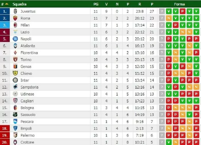 Si definisce ancora la classifica di Serie A, che con le altre partite in programma oggi, vede la capolista Juventus allontanare le inseguitrici. Vincono Lazio e Milan, pari a reti bianche per la Roma.
