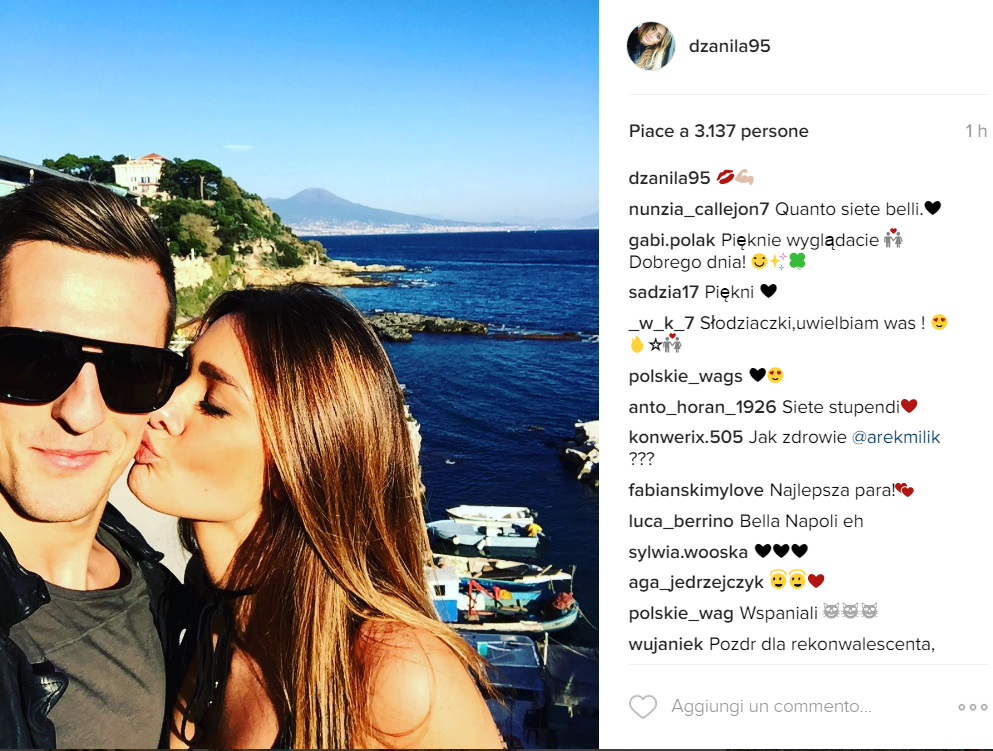 Eccolo in foto con la compagna Jessica Ziółek e alle spalle il mare ed il Vesuvio.