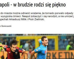 “Quando si entra in città si ha come l’impressione che sia passato un tornado. Spazzatura ovunque, un quadro che difficilmente si trova in altri agglomerati urbani. Napoli è la terza città più grande d’Italia, ma come sporcizia è la prima. Napoli è il luogo in cui la sporcizia ha le chiavi della città, è un cittadino onorario. Ci sono edifici fatiscenti che sembrano usciti da qualche incendio e le persone ai semafori non rispettano nulla. Le luci hanno le stesse funzioni di quelle natalizie. In questo quadro di disperazione nasce quella che è la squadra di calcio, di cui fanno parte Milik, Zielinski e Lasicki”.