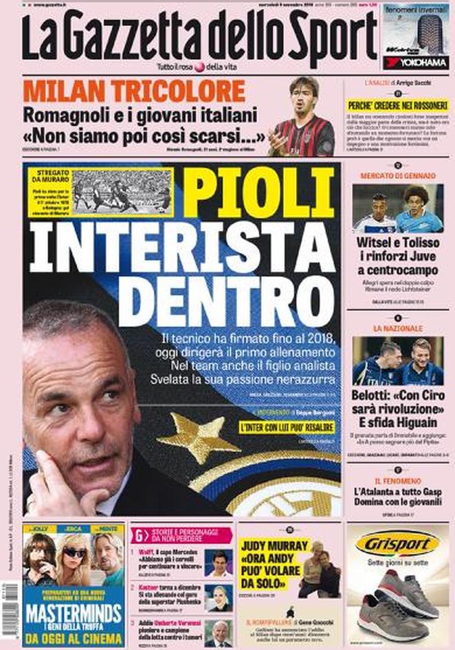 Queste le prime pagine dei quotidiani sportivi italiani: Gazzetta dello Sport, Corriere dello Sport e Tuttosport (SCORRI IN ALTO LE PRIME PAGINE)