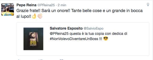 La storia non è passata inosservata nemmeno a Pepe Reina, da sempre amante della cultura napoletana, che è stato protagonista di un simpatico scambio di tweet con l’attore.