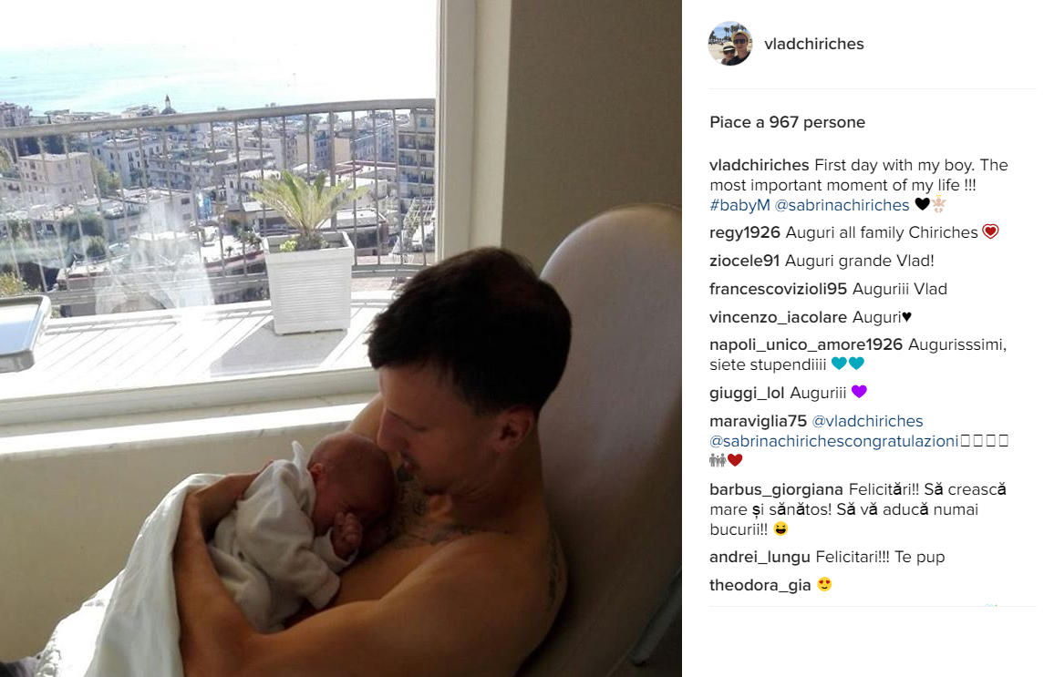 Fiocco azzurro in casa Napoli: è nato il figlio di Vlad Chiriches. “First day with my boy. The most important moment of my life” (“Primo giorno con il mio ragazzo, il momento più importante della mia vita”), ha scritto su Instagram il difensore rumeno.