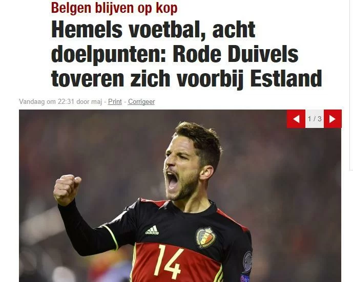Il Belgio vince 8-1 contro una modesta Estonia e conquista i tre punti validi per la qualificazione alla prossima edizione dei Mondiali 2018. Il principale protagonista della partita è stato sicuramente Dries Mertens, con una tripletta e un assist ha rubato la scena ai suoi compagni Hazard e Lukaku e anche i principali quotidiani belga lo hanno notato.