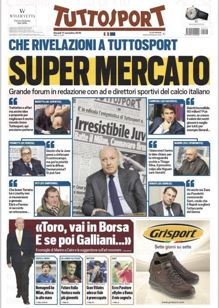 Tuttosport invece dà spazio al “Super mercato“, dopo il forum in redazione con direttori sportivi e ad del calcio italiano.