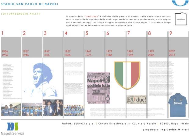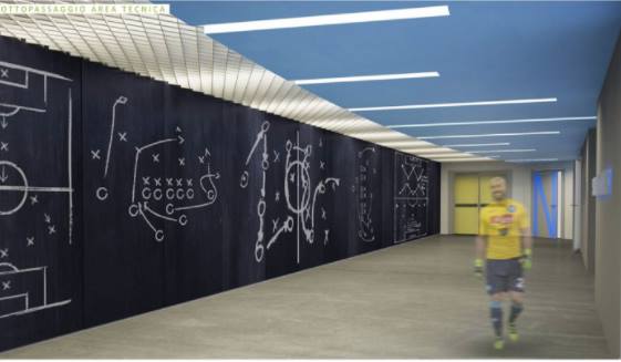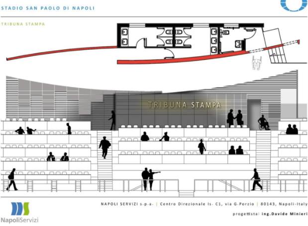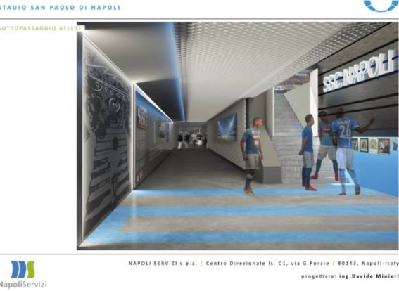 A tal proposito, la radio ufficiale del Napoli, Kiss Kiss Napoli, ha postato sul proprio profilo Twitter i prospetti dei lavori e di come si presenterà il San Paolo a opera completata. In particolare, come cambieranno gli spogliatoi, il sottopassaggio e la tribuna stampa.