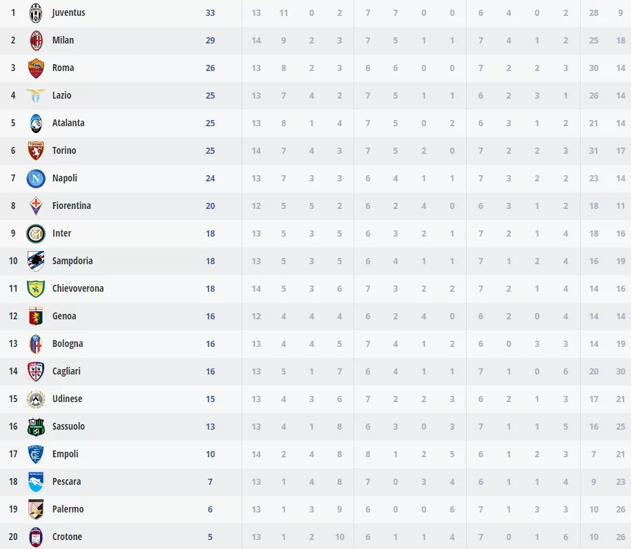 Ora il Torino è a +1 sul Napoli e si piazza al quarto posto a pari punti con Lazio e Atalanta. Il Milan è secondo a 29 punti a -4 dal primo posto e a +5 sugli azzurri. I partenopei, invece, giocheranno lunedì alle 19 al San Paolo contro il Sassuolo.