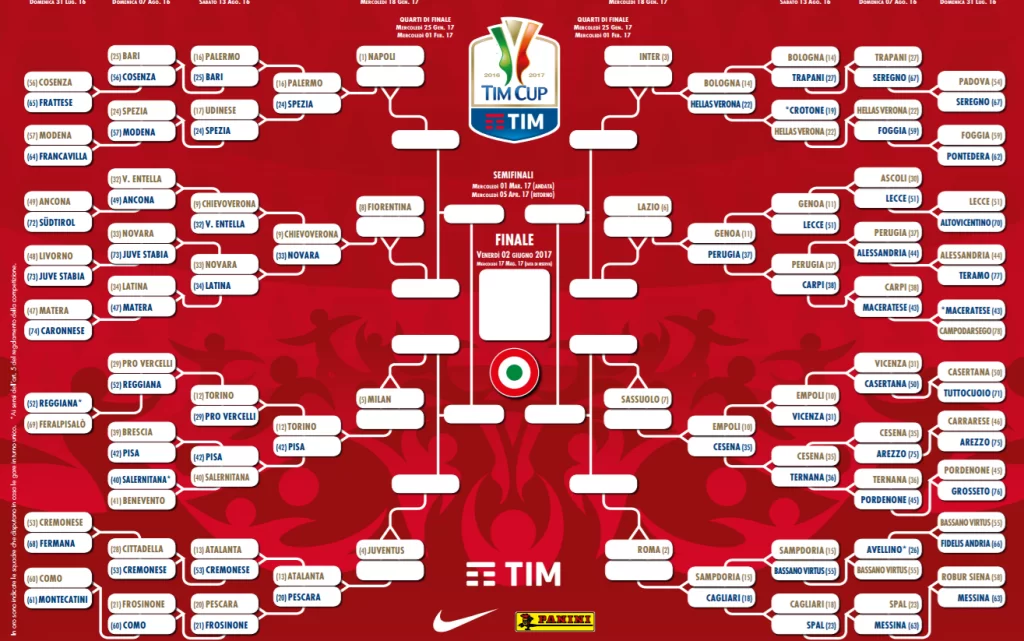 Gli azzurri ai quarti potrebbero incontrare la Fiorentina – che se la vedrà con la vincente di Chievo-Novara – ed in un’eventuale semifinale la Juventus, che giocherà contro una tra Atalanta e Pescara.