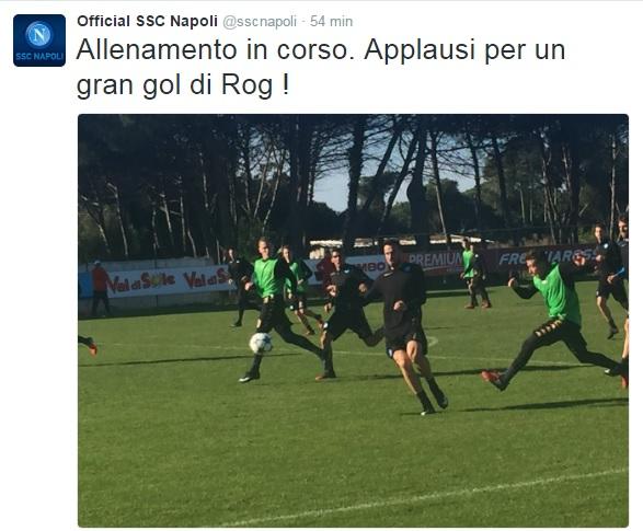 Particolarmente in mostra il giovane croato Marko Rog, autore di un gran gol che ha strappato gli applausi dei presenti. La società partenopea, attraverso il proprio account Twitter, ha pubblicato alcune foto e video della sessione mattutina.