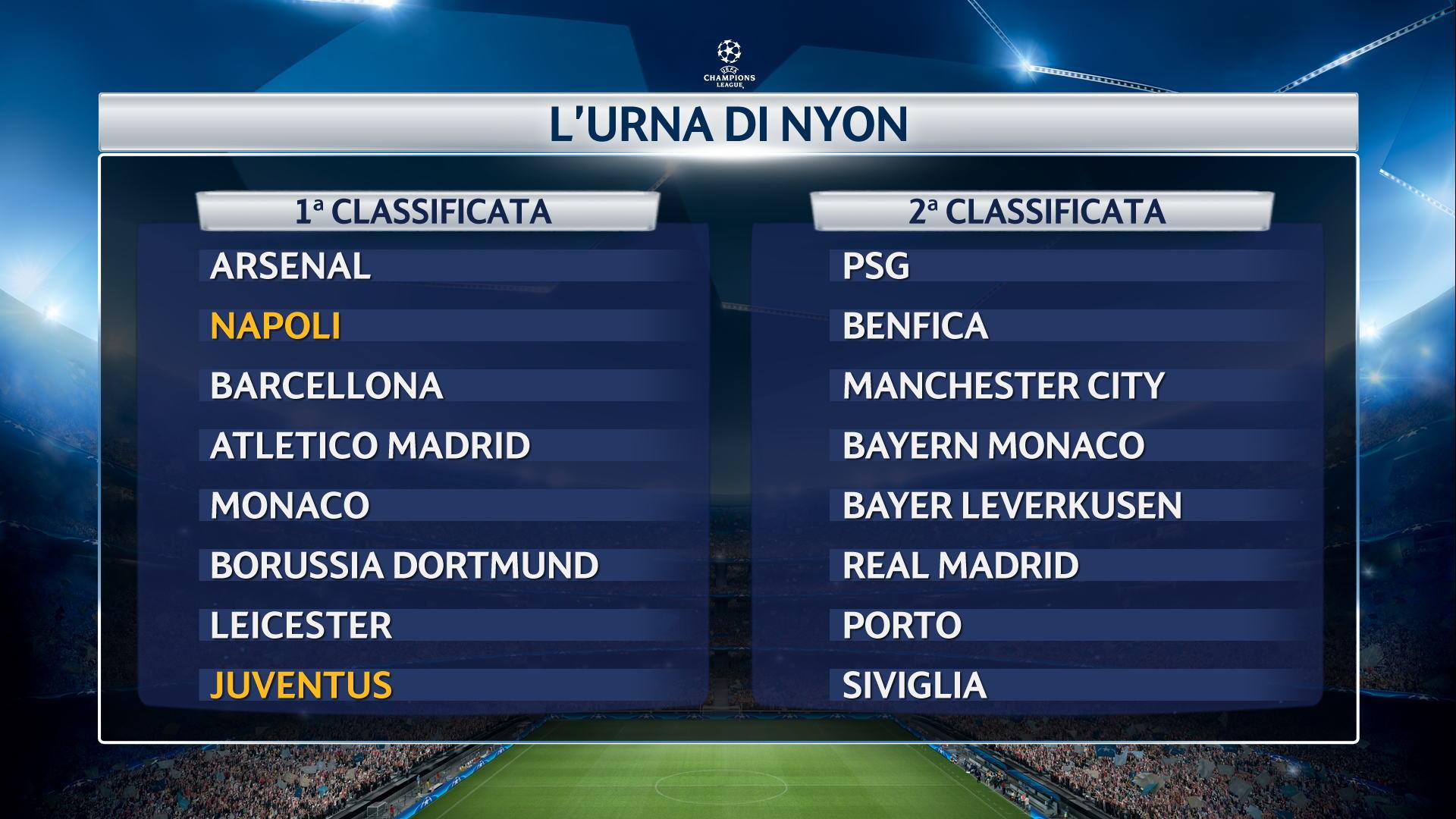 SECONDE CLASSIFICATE (E POSSIBILI AVVERSARIE DEL NAPOLI):