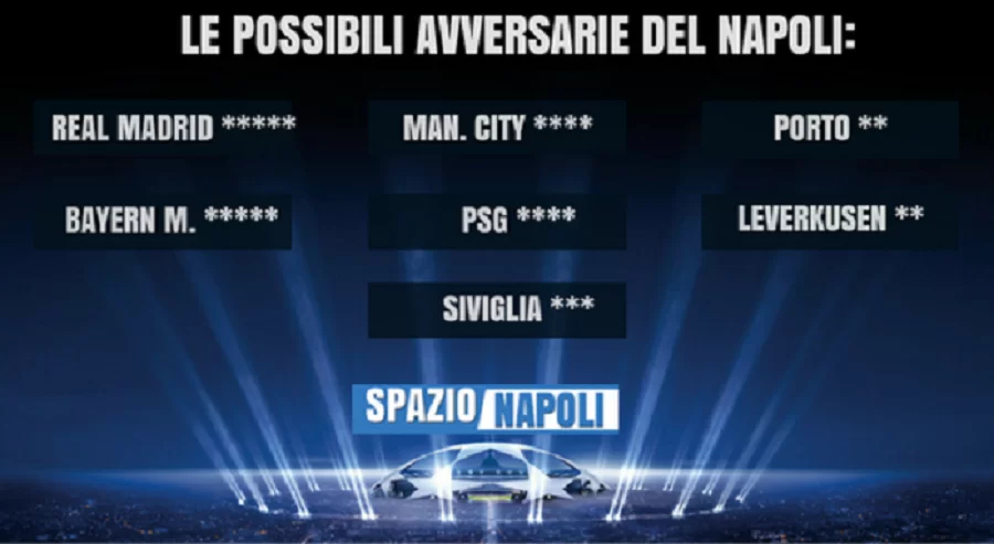 NAPOLI – Può incontrare tutte (Real Madrid, Bayern Monaco, Manchester City, Psg, Siviglia, Leverkusen e Porto), tranne il Benfica.