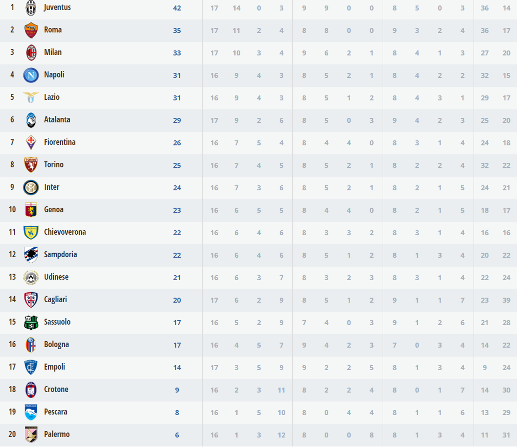 Il Milan, invece, si ferma in casa con l’Atalanta di Gasperini. Pareggio a reti inviolate e poche emozioni tra la fitta nebbia ed il freddo del San Siro. I rossoneri salgono momentaneamente a + 2 sul Napoli, che domani ha la grande occasione di sorpassare la squadra di Montella. L’Atalanta è sesta a 29 punti con uno sguardo all’Europa League. Gli azzurri affronteranno il Torino alle ore 15.