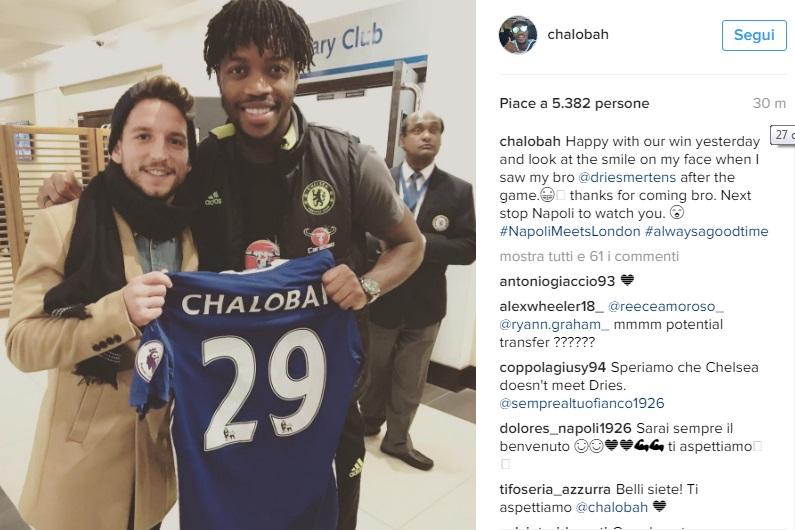 Il centrocampista inglese ha postato una foto che lo ritrae in compagnia del folletto belga del Napoli, andato a Londra per salutare l’ex compagno di squadra. “Felice della nostra vittoria ieri e di come sono contento di aver incontrato mio fratello Dries Mertens dopo il match. Grazie per essere venuto, fratello. La prossima volta vengo a Napoli a vederti” ha scritto Chalobah.