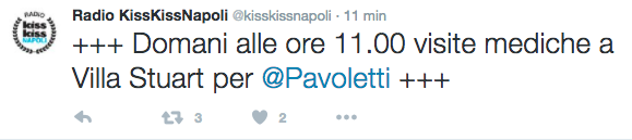 A riportare la notizia è la radio ufficiale del Napoli, attraverso un tweet: