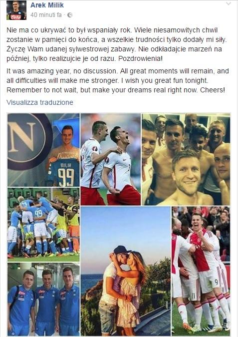 L’attaccante del Napoli, Arek Milik, ha voluto fare i propri speciali auguri ai suoi followers. L’attaccante polacco ha infatti postato un particolare messaggio con tanto di foto sulla propria pagina Facebook: