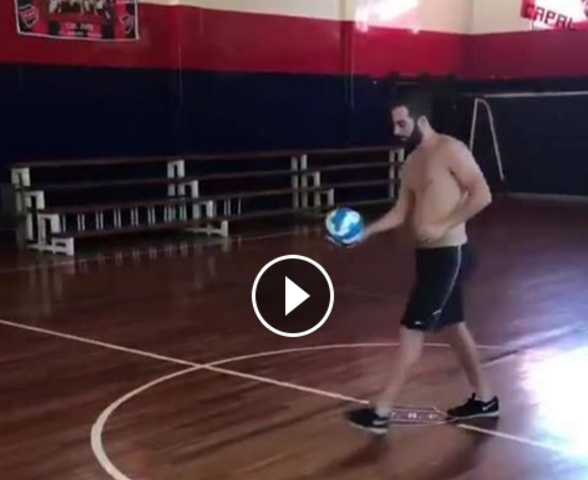 E l’ex attaccante azzurro si è esibito in un numero impressionante: dalla metà di un campo di basket canestro con un tiro di destro.