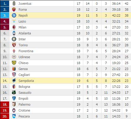 Nell’anticipo serale delle 20.45 invece il risultato di Napoli-Sampdoria è stato di 2-1 con i partenopei che la vincono all’ultimo secondo con la rete di Lorenzo Tonelli, alla prima con la maglia azzurra. Con questo risultato la compagine di Maurizio Sarri rimane al terzo posto e conclude a -3 rispetto a quei 41 punti che consegnarono agli azzurri il titolo di campioni d’inverno nel campionato precedente.
