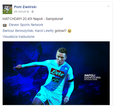 Il centrocampista polacco è carico in vista della gara di stasera contro la Sampdoria, e il tutto traspare anche dal suo profilo Facebook ufficiale dove lancia un guanto di sfida ai due connazionali doriani Linetty e Bereszyński, con un eloquente: “Siete pronti?”.