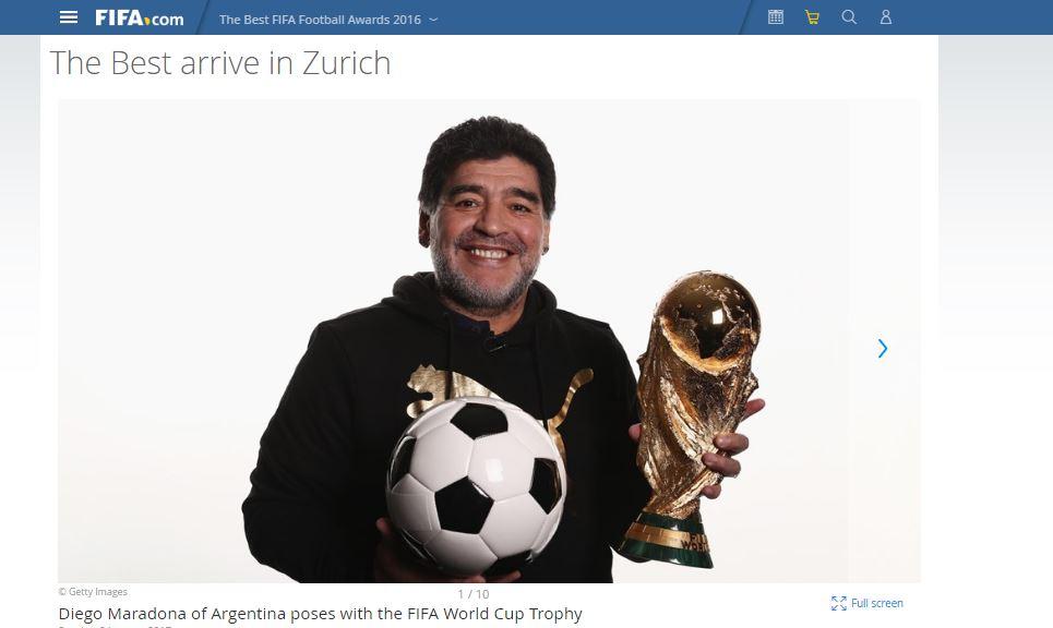 Tra i partecipanti al comitato che ha giudicato i calciatori non poteva mancare il migliore: Diego Armando Maradona. Attraverso un Tweet la FIFA ha voluto celebrare l’arrivo del campione argentino in Svizzera con una foto che lo ritrae con la Coppa del Mondo in mano.