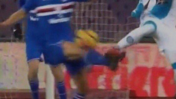“Il fallo in area di Praet su Callejon al 42′ del primo tempo. Sfuggito a Di Bello, assistente e arbitro di porta. E anche a colleghi disattenti”, ha scritto su Twitter, allegando l’immagine incriminata.