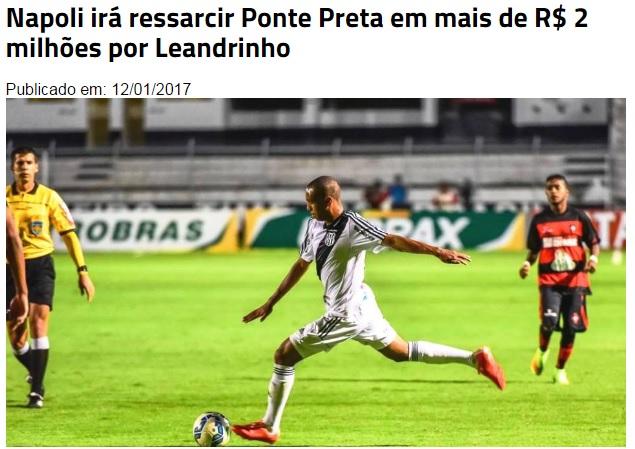 Per assicurarselo il Napoli ha sborsato circa 600mila euro (2 milioni di real, ndr) nella casse del Ponte Preta, così come confermato dal club brasiliano con un comunicato sul proprio sito ufficiale.Di seguito il comunicato del club brasiliano che commenta la trattativa: “La trattativa per la cessione di Leandrinho, che ha avuto inizio nel gennaio 2016, è finalmente giunto alla fine: lo stesso atleta, che non voleva giocare per Ponte Preta (squadra per la quale aveva contratto), ha scelto di firmare con la Società Sportiva Calcio Napoli e il club italiano, a sua volta, provvederà a rimborsare 600 mila euro (poco più di 2 milioni di $) per importi investiti da attribuire alla formazione del ragazzo”.