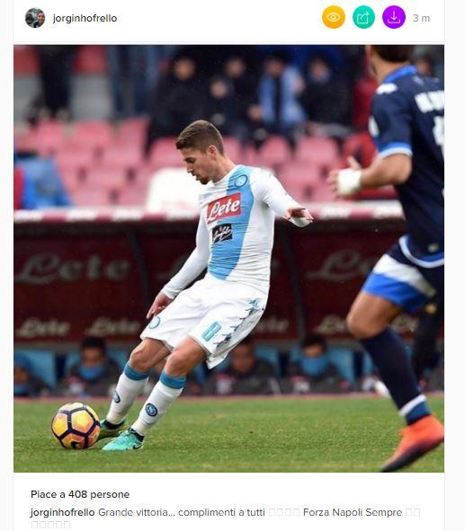 Dopo Piotr Zielinski, anche Jorginho Frello ha voluto condividere con i tifosi la felicità per la vittoria odierna. Attraverso il suo profilo Instagram infatti il regista italo-brasiliano ha pubblicato una foto con un messaggio dedicato ai suoi follower.