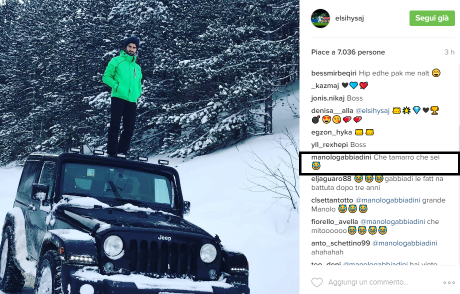 Trattasi di Manolo Gabbiadini che, nella confusione dei commenti, ha scritto un semplice e scherzoso “Ma che tamarro che sei”.