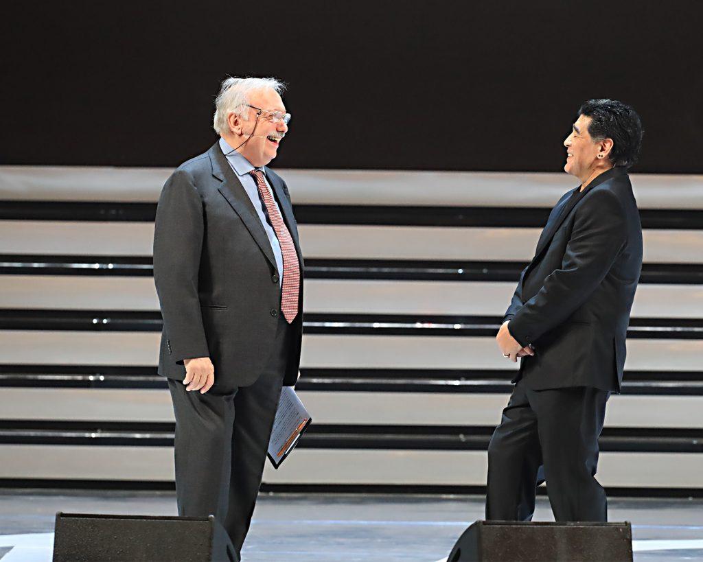 Una due ore indimenticabile in cui l’asso argentino si è messo a nudo, variando da tema a tema, toccando il calcio e finendo con la religione, senza dimenticare la politica e quegli anni in cui si consacrava come il giocatore più forte del mondo, “primato” ancora oggi rimasto ineguagliato. Di seguito gli scatti più belli della serata, che potete rivivere in forma di diretta testuale cliccando qui.