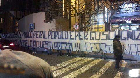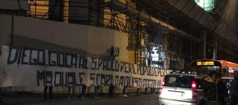 “Diego gioca al San Paolo per il popolo e per gli scugnizzi, ma quale san Carlo a questi prezzi!!!” – si legge sugli striscioni (SCORRI IN ALTO LA GALLERY). Amore e devozione per Diego, meno per gli organizzatori.