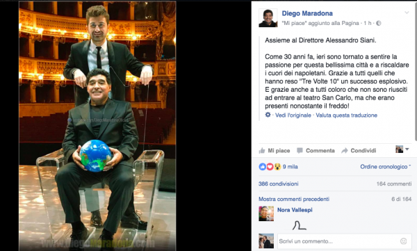Maradona lascerà la nostra città nelle prossime ore. Intanto, attraverso il suo profilo Facebook, ha voluto salutare tutti i tifosi del Napoli: