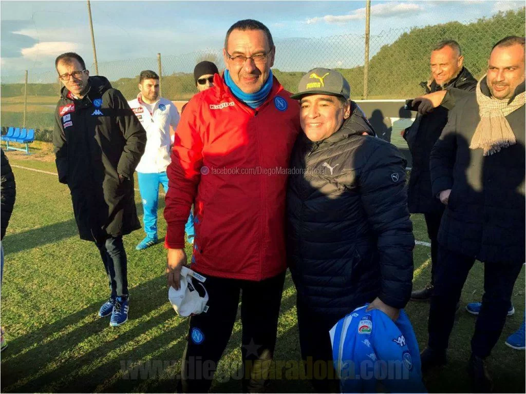 Un pomeriggio unico, quasi indimenticabile. E’ quello vissuto oggi a Castel Volturno dal Napoli, a partire dallo staff tecnico per finire ai giocatori, in occasione della visita a sorpresa di Diego Armando Maradona.