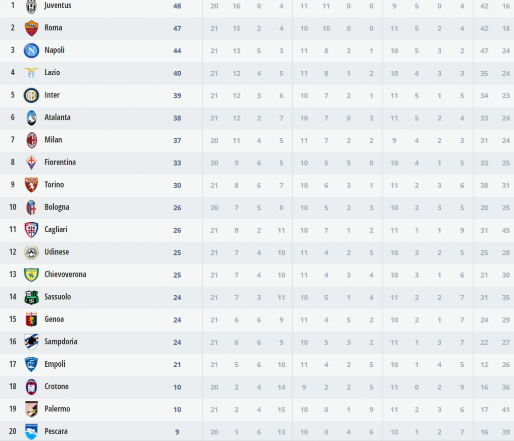 I nerazzurri mantengono quindi intatto il distacco dal Napoli, pari a cinque punti, ed accorciano sulla Lazio sconfitta nel lunch match contro la Juventus. Vince in trasferta il Sassuolo, grazie alla doppietta di Matri ed il gol di Pallegrini. Per gli abruzzesi solo da statistiche il goal di Bahebeck. Errore dal dischetto per Biraghi nell’1-3 finale. Rotondo 2-0 griffato dall’ex azzurro Blerim Dzemaili per il Bologna al Dall’Ara contro il Torino.