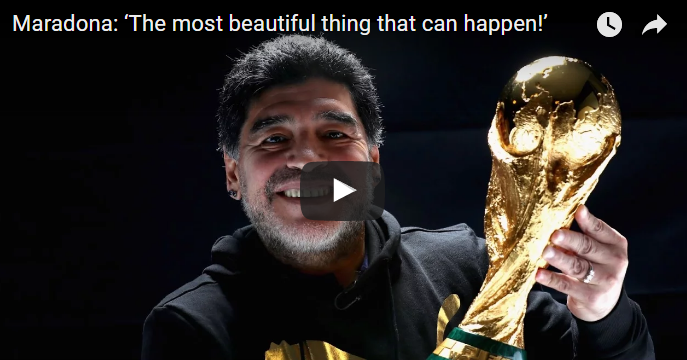 “La cosa più bella che ti possa accadere da calciatore è sapere quanto pesa la Coppa del Mondo. Milioni di giocatori sognano di averla fra le proprie mani e scoprire quanto pesa. Si fanno tanti sacrifici e sforzi per arrivare prima o poi a conquistarla e sollevarla. Io amo questa coppa”, ha dichiarato el Pibe de oro.