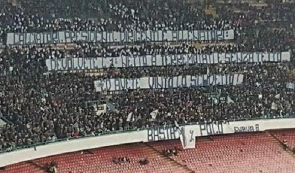 La Curva B infatti ha esposto uno splendido striscione a favore dei terremotati e dei senza tetto, chiedendo di devolvere l’1% netto ai meno fortunati, nonché a coloro colpiti dalle recenti tragedie. Un gesto che i supporter azzurri paragonano alla vittoria dello Scudetto.