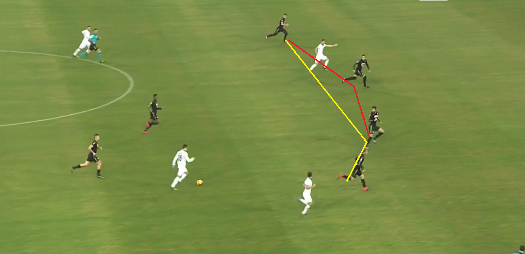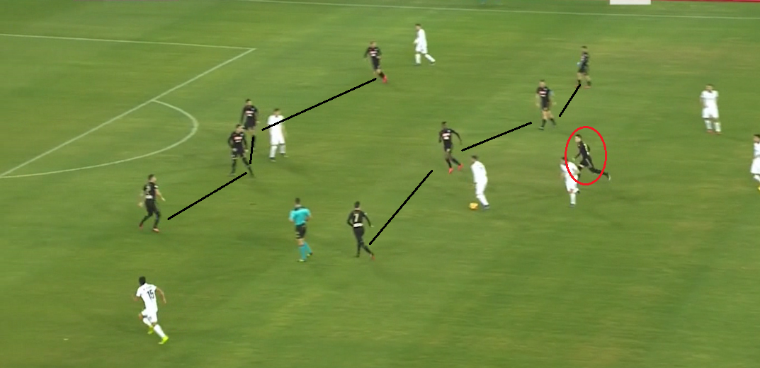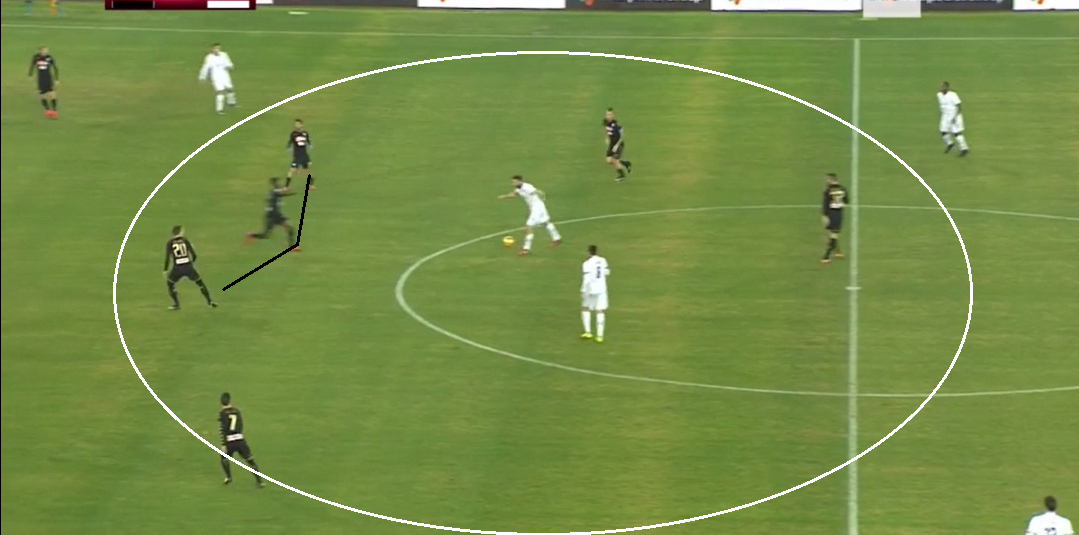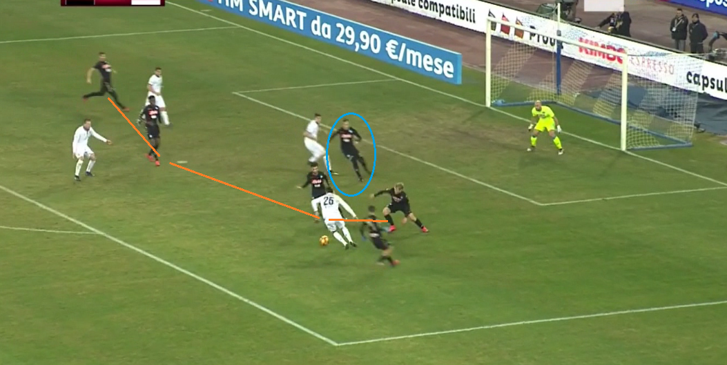 La seconda arma è quella di tenere i reparti bassi rispetto a quello che è il solito atteggiamento del Napoli di Sarri. E quello di stringere i reparti creando una sorta di 4-5-1: