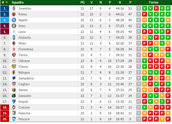 QUESTA LA CLASSIFICA AGGIORNATA:
