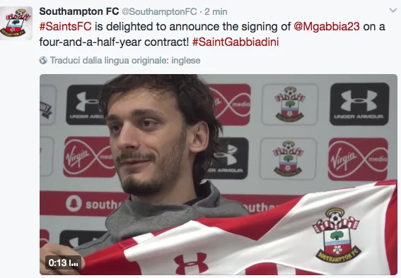 Silvio Pagliari, procuratore del neo-acquisto dei Saints, ha pubblicato un tweet sul proprio account ufficiale, svelando una frase confessatagli in passato proprio da Gabbiadini, riferita al sogno di giocare un giorno nel campionato più bello del mondo.