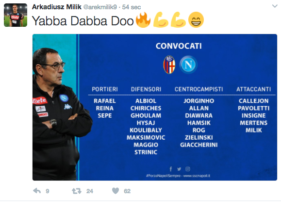 A distanza di quattro mesi dall’infortunio al crociato, Arkadiusz Milik è stato nuovamente convocato: partirà con il Napoli alla volta di Bologna.