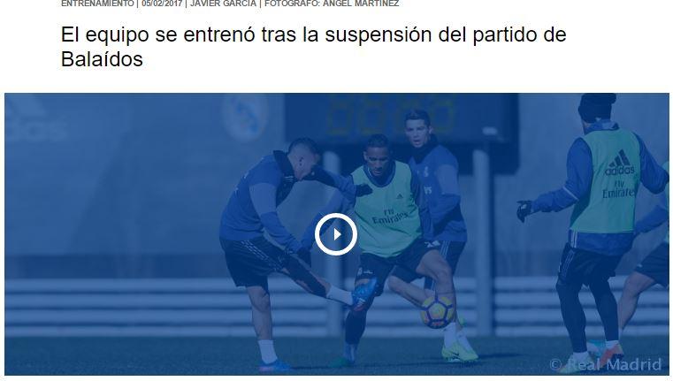 “La squadra ha affrontato un nuovo allenamento nel centro del Real Madrid dopo che la partita che si sarebbe dovuta giocare al Balaídos è stata rinviata. I blancos hanno completato una sessione consistente in un intenso riscaldamento, esercizi di possesso e una partita di due tempi nel campo 3“.