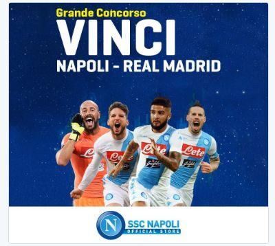 “Vola allo stadio per il match evento dell’anno, partecipa allo straordinario concorso e vinci il biglietto della sfida stellare del 7 marzo al San Paolo. Tutte le info e modalità di partecipazione sul sito: concorso.sscnapoli.it Regalati la passione azzurra, vinci la sfida col Real e diventa protagonista dell’evento dell’anno nella magica notte del San Paolo“.