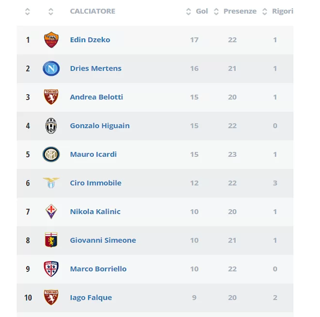 Così grazie alle reti segnate questa sera si è portato in vetta alla classifica dei marcatori. Scavalcato quindi Dries Mertens, che con la tripletta di Bologna aveva momentaneamente preso il comando della graduatoria.