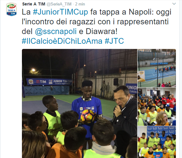 Bel momento di sport quest’oggi a Napoli dove i ragazzi della Junior Tim Cup hanno incontrato Amadou Diawara, centrocampista azzurro.