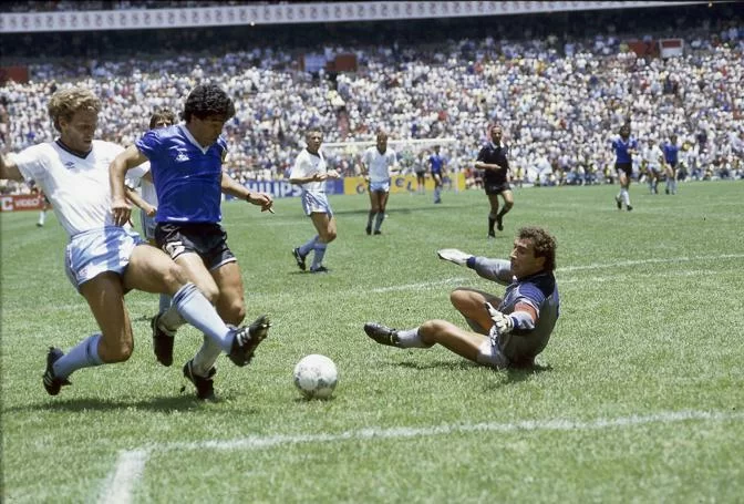 È esattamente ciò che avvenne quel 22 giugno 1986 allo stadio Azteca di Città del Messico, teatro di una delle partite più significative della storia del calcio, Argentina-Inghilterra, ma soprattutto dell’indiscutibile gol più bello di sempre: il dribbling pazzesco di Diego Armando Maradona. In quella corsa fatta di 62 metri, 42 passi, 12 tocchi col pallone (tutti rigorosamente di sinistro!) di cui 4 di esterno, uno con la pianta e 7 di interno, il tempo si fermò.