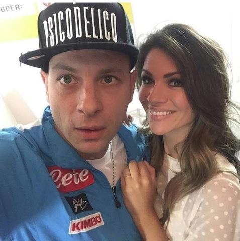 Nello scatto vediamo Clementino indossare la tuta del Napoli, al fianco della bellissima Alessia Ventura. Chissà che i colori azzurri non portino fortuna al rapper verso la conquista della finale.