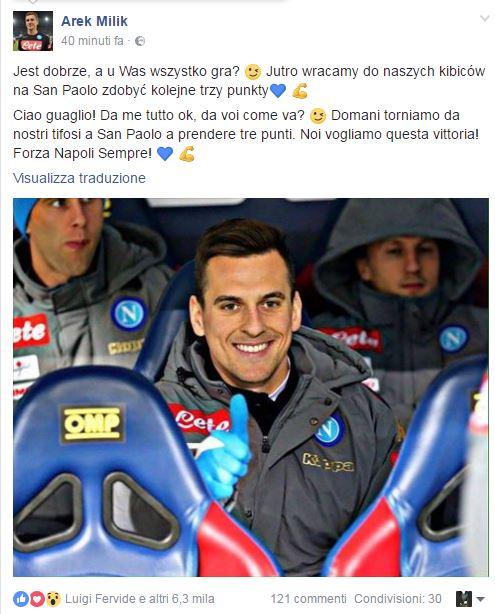 Arkadiusz Milik non vede l’ora di tornare in campo. Lo sta facendo capire in tutti i modi: video, foto e ora anche inviti. Si perché il bomber polacco ha deciso di invitare allo stadio i suoi tifosi in napoletano in vista di Napoli-Genoa. O almeno ci ha provato, ecco il risultato:
